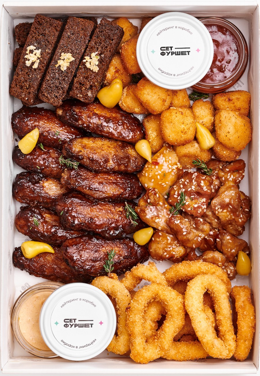 2 390 ₽Самый удобный формат подачи блюд на вечеринке — это кейтеринг в коробочках. Люди собираются в гостях для того, чтобы повеселиться и пообщаться, но в какой-то момент они захотят есть. Чтобы утолить голод друзей и близких, нужно заранее продумать питание на праздничном столе. Сеты от нашей компании легко можно поставить на стол или даже на пол во время вечера настольных игр. Подача еды будет красивой и вкусной, СЕТ-ФУРШЕТ гарантирует!